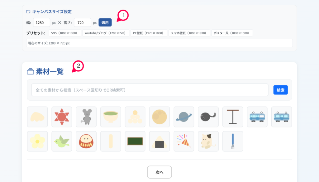 - キャンバスのサイズを選択する