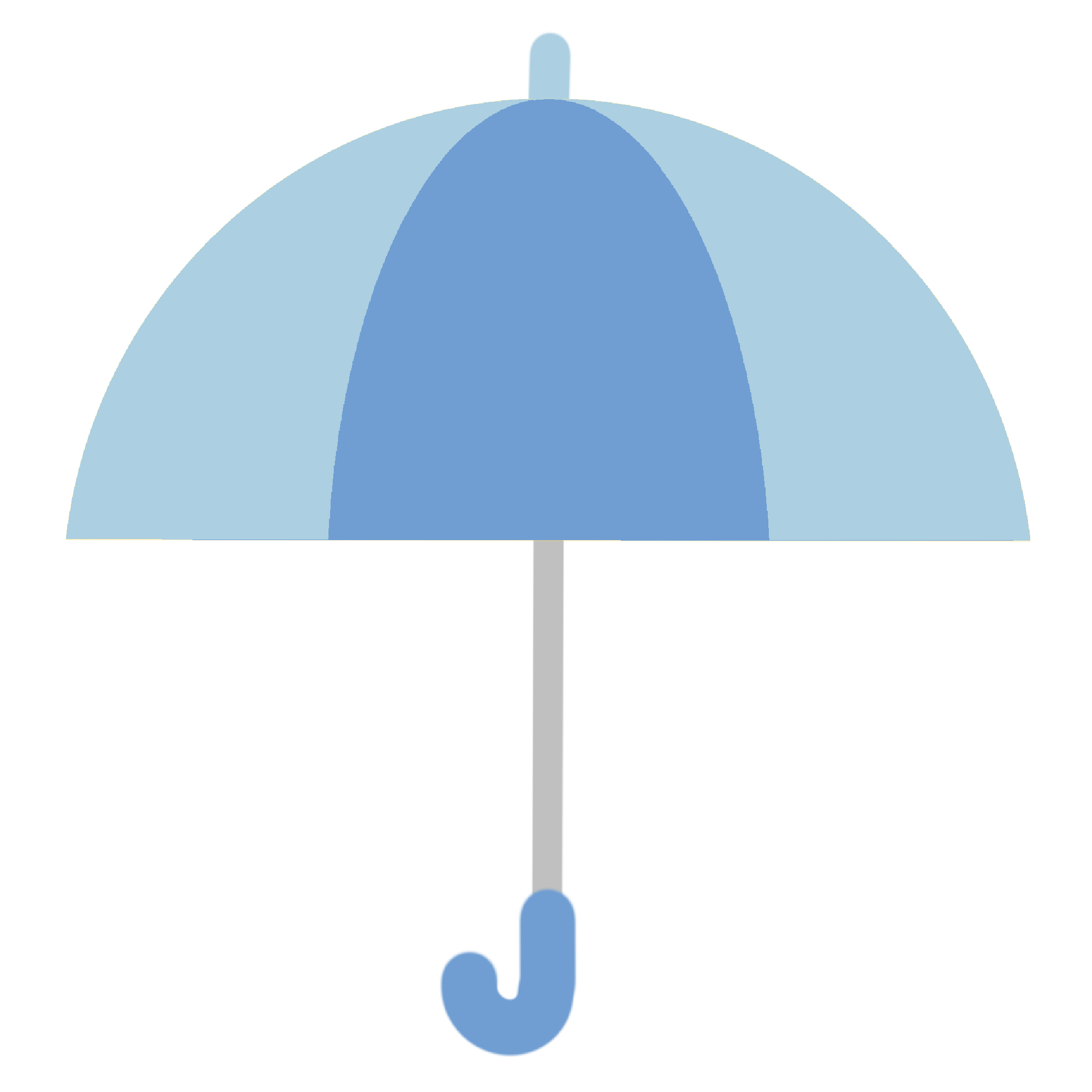 雨の中を歩く人たちを、優しく守る青い傘くんです。みんなに笑顔を届けるために、今日も元気に開いています。