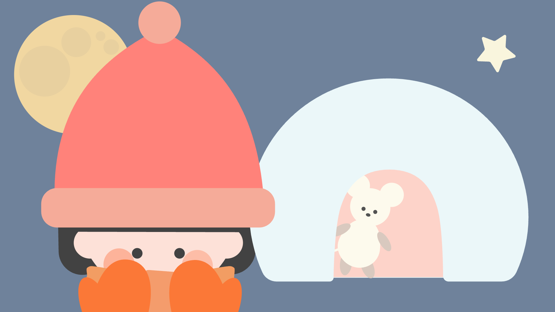 満月と星空の下、小さなねずみがかまくらから顔を覗かせ、微笑ましい雰囲気を醸し出しています。