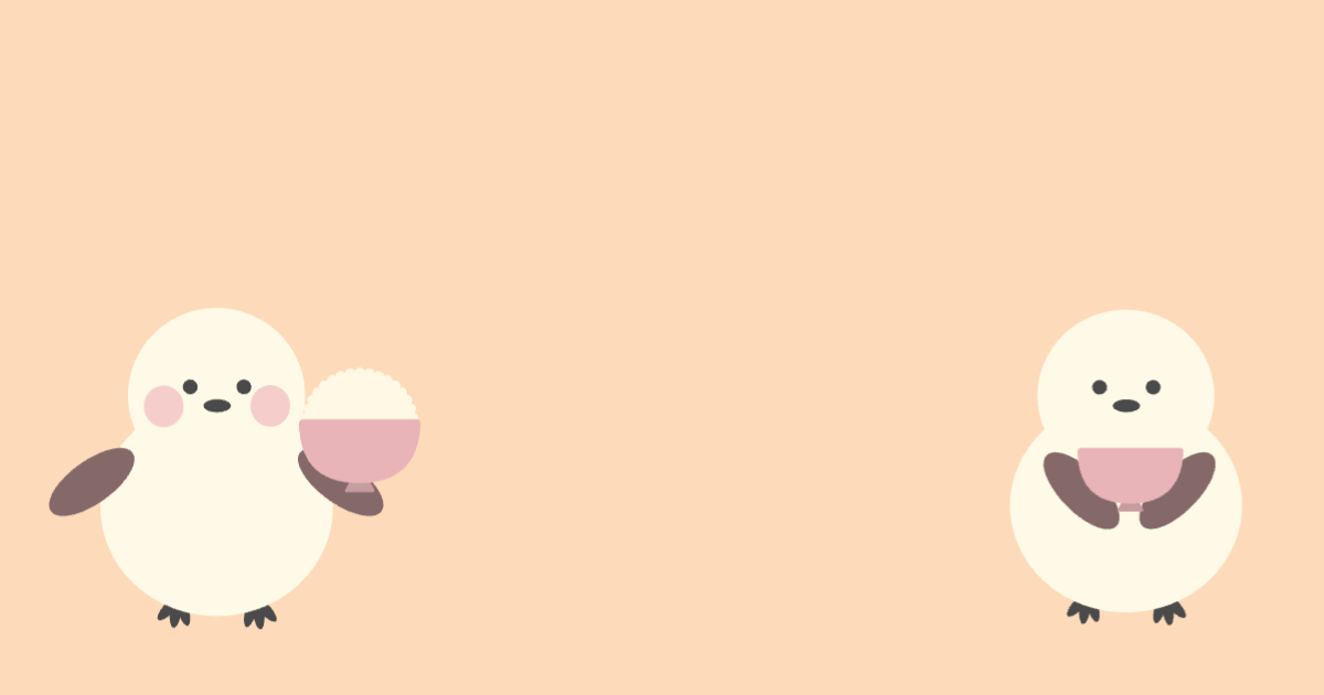 可愛らしいシマエナガが、仲良くご飯を食べるシーンです。 暖かい色調の背景がほっこりとした雰囲気を醸し出しています。 愛らしい表情と愛らしい仕草が、心を和ませます。