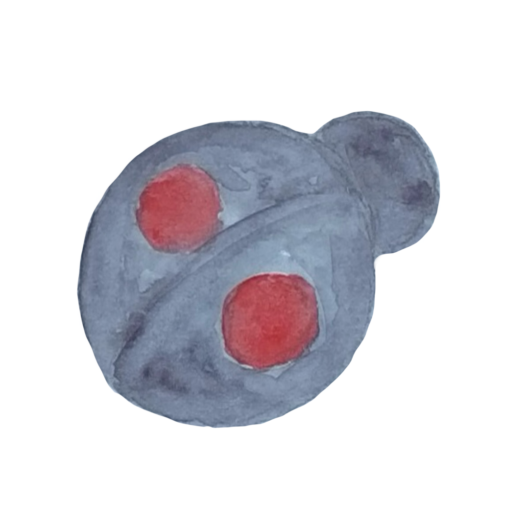 この水彩画は、2つの星模様を持つてんとう虫を描いています。柔らかな色合いと独特なデザインが特徴で、可愛らしさを引き立てています。自然や昆虫のテーマにぴったりの作品です。