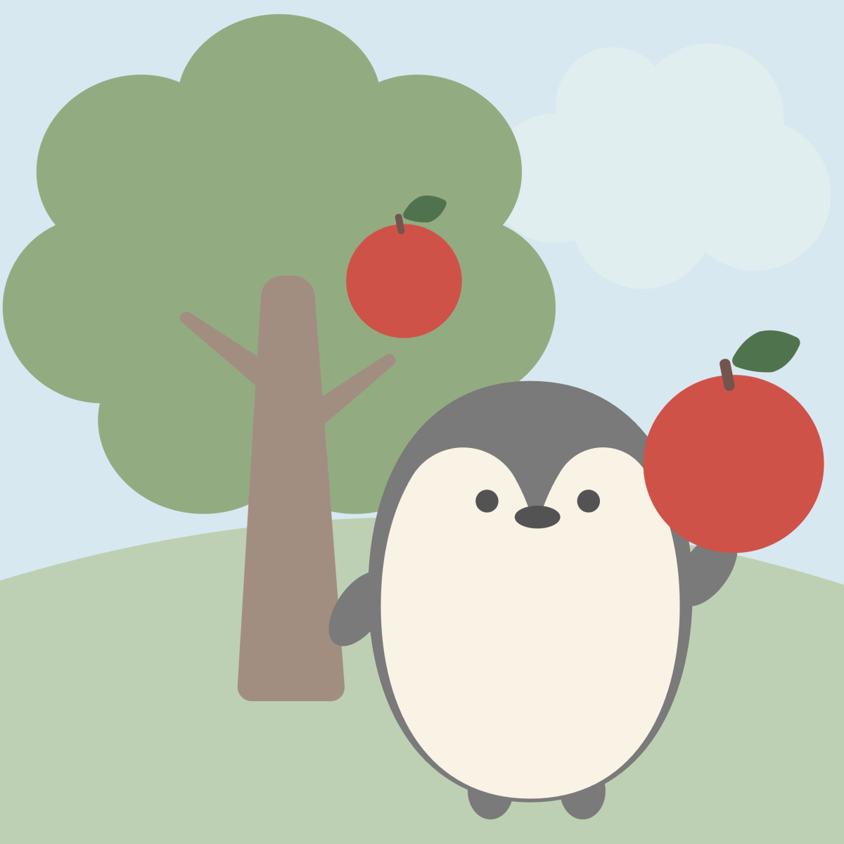 ぺんぎんは、あかいりんごを見つけました。