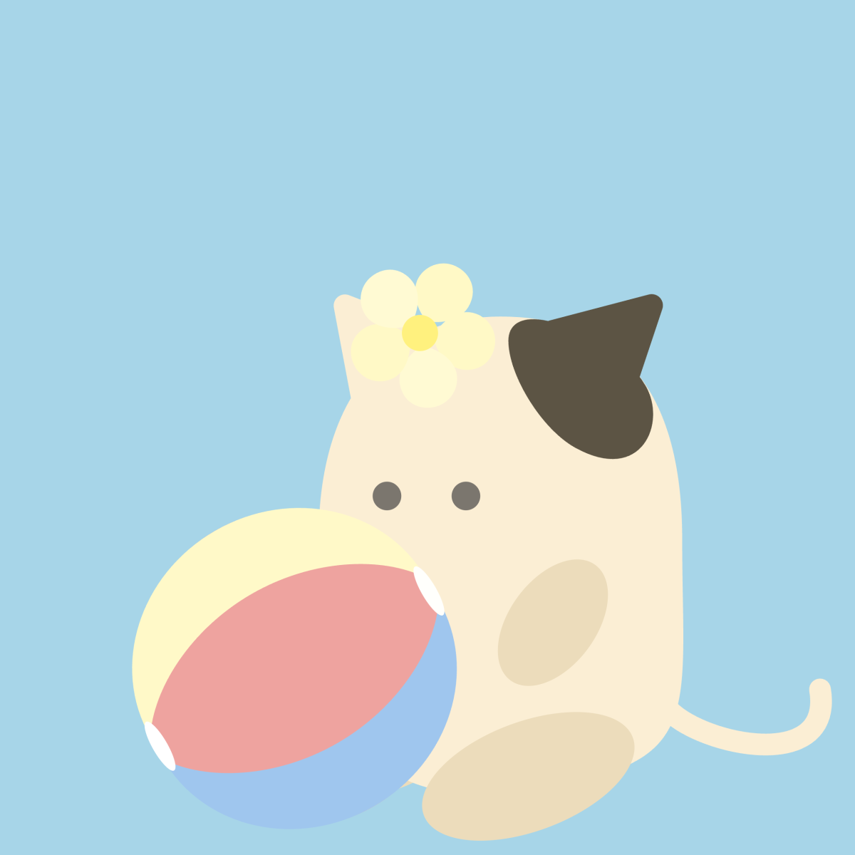 ねこがボールであそんでいます。